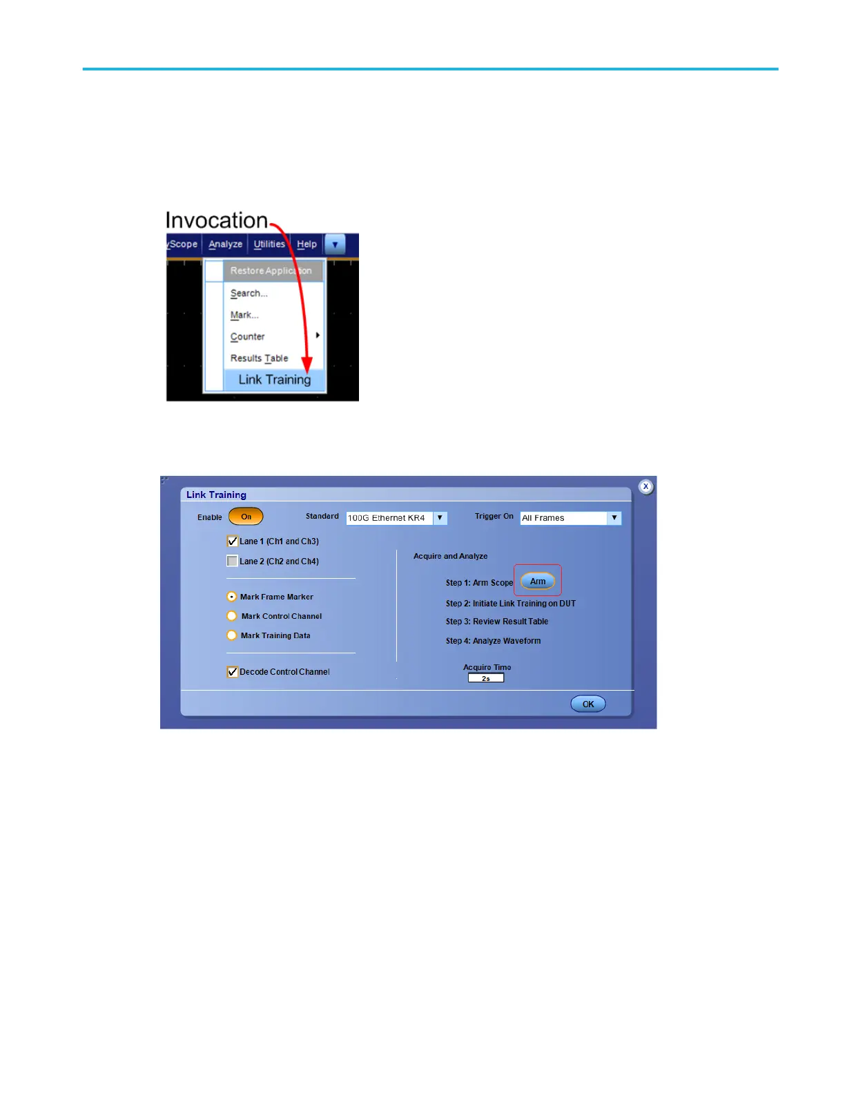 Starting Link Training on the DUT is DUT-specific, but is typically done from a command line console program.