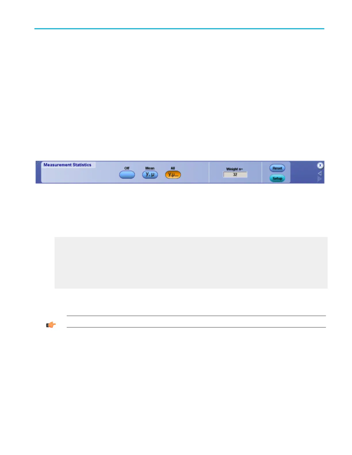 Use the Measurement Statistics control window to display statistical calculations on measurements. The control window contains