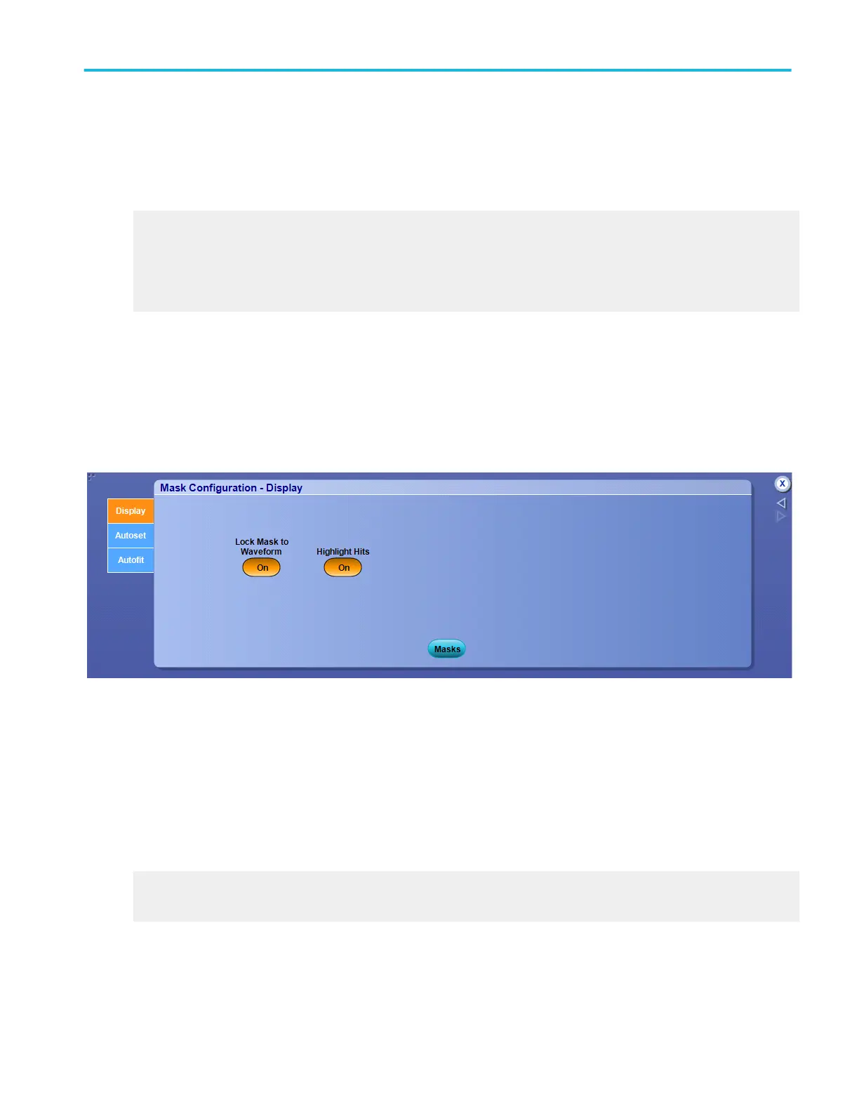 Behavior. When the On/Off control is on, the mask is displayed on the graticule. When the On/Off control is off, the mask is not
