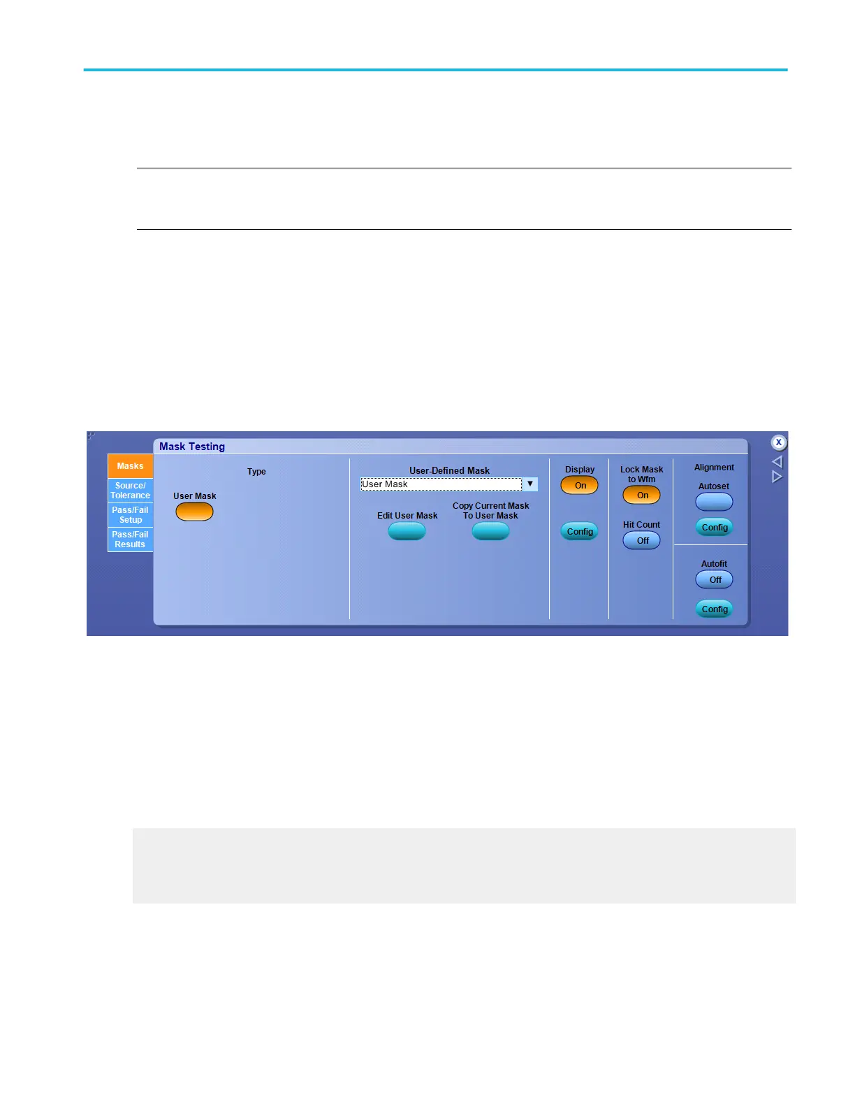 NOTE. The Comm Trigger is designed to work with communications mask and standard testing. Mask testing automatically uses