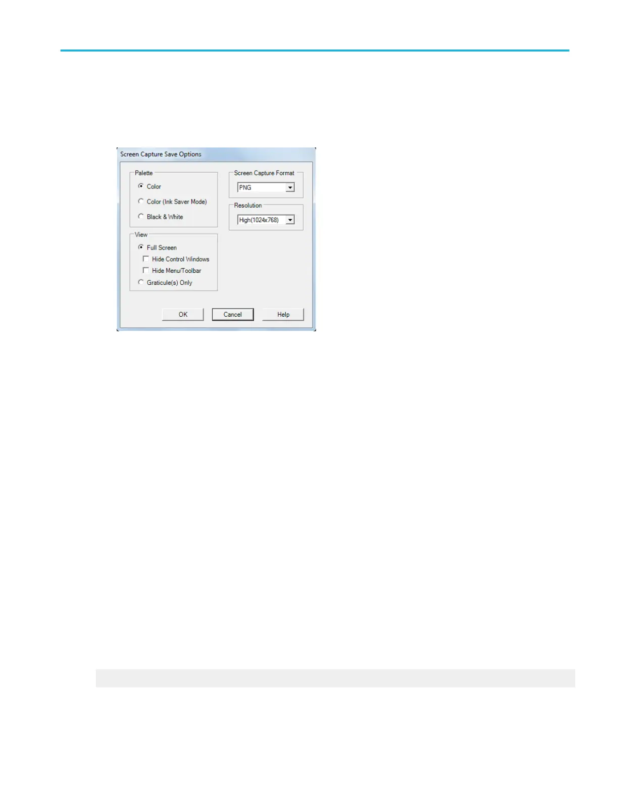 To save an image of the entire screen, select Full Screen. Optionally, select to Hide Control Window and Hide Menu/