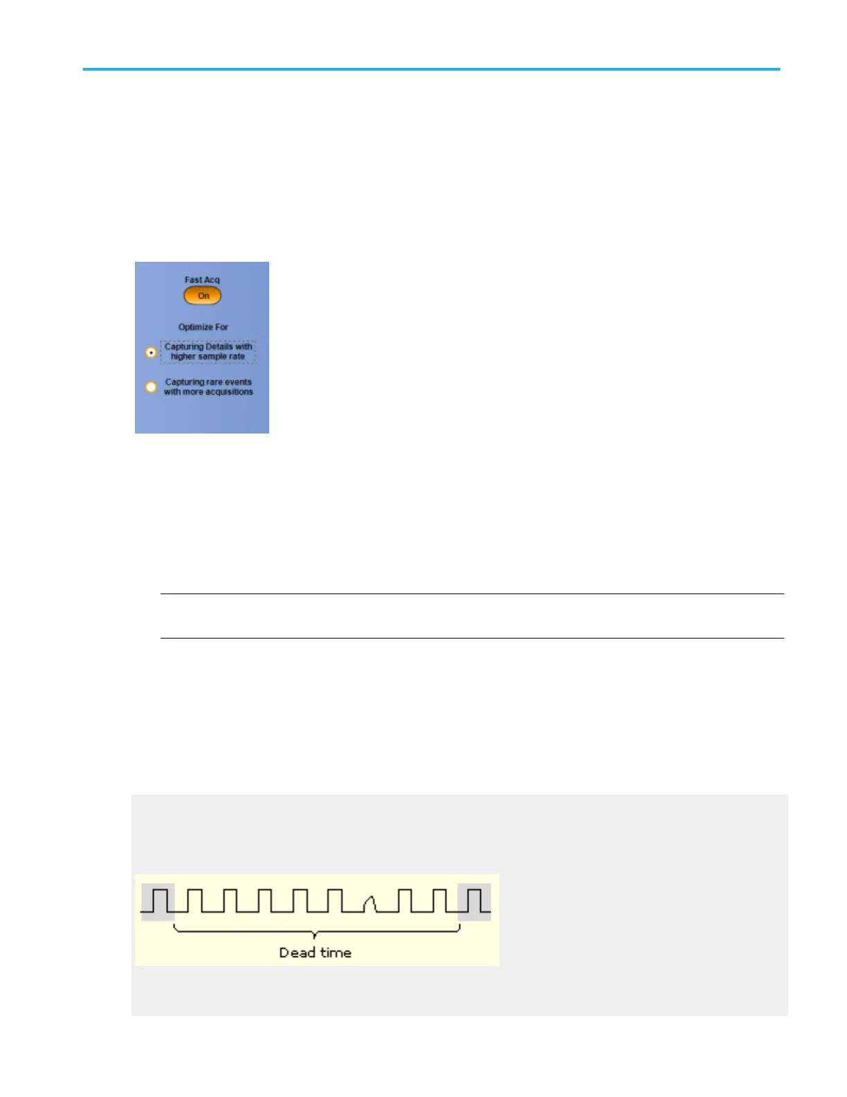 Fast Acquisitions mode keeps the dead time between acquisitions very short. This improves the chances of acquiring infrequent