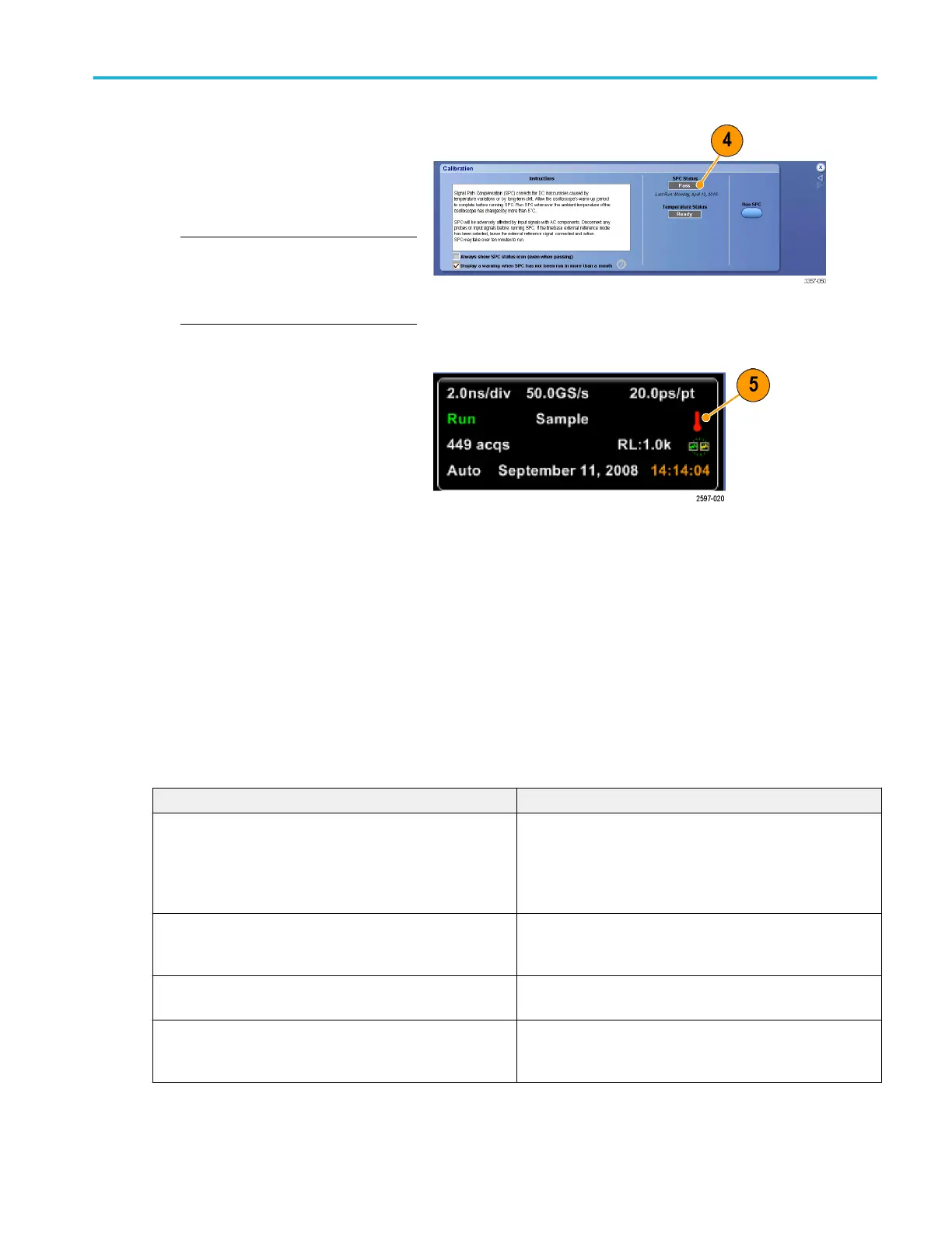 The following table lists the possible status messages for signal path compensation and the recommended action.