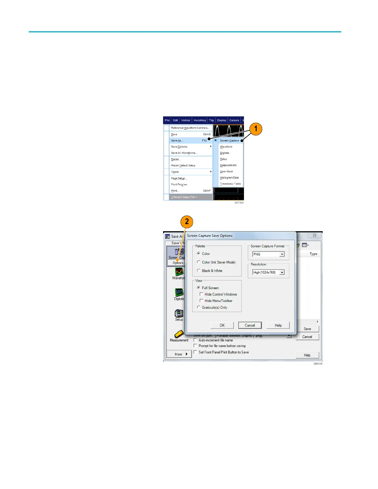This section contains procedures for saving and recalling screen captures and setups, saving measurements, using the