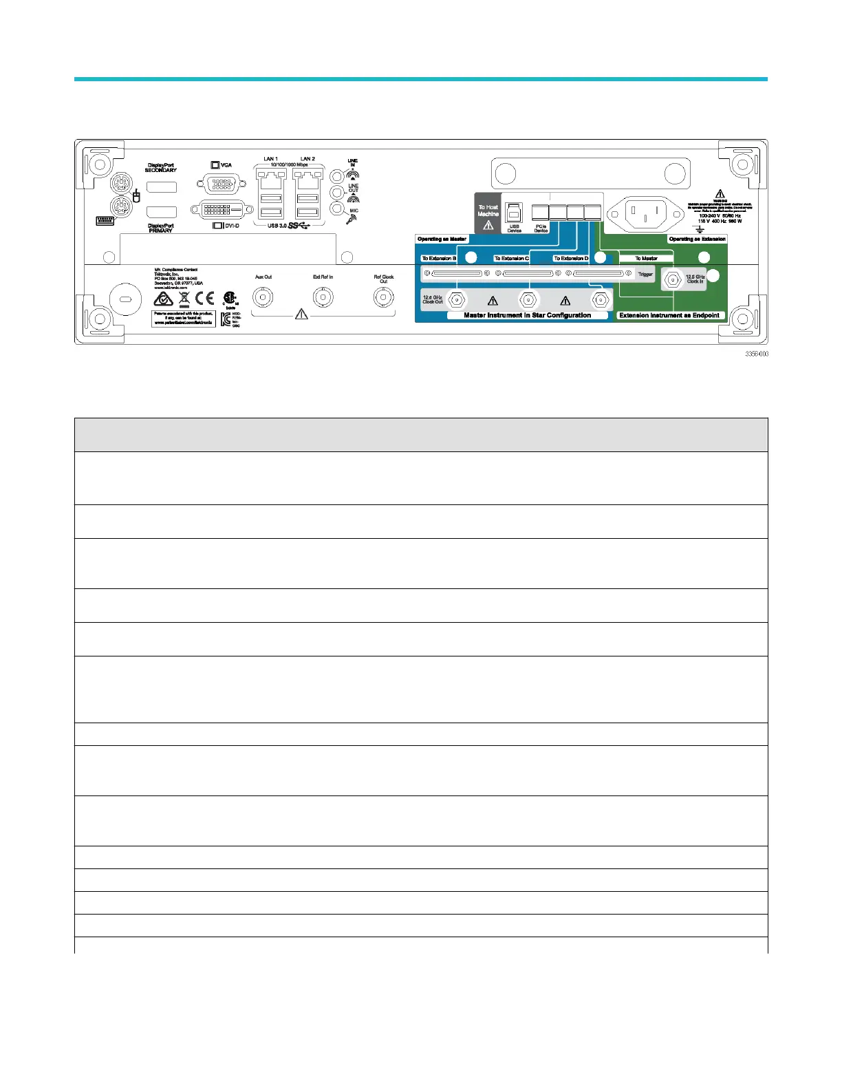 表 2 : 後部パネル・コネクタ