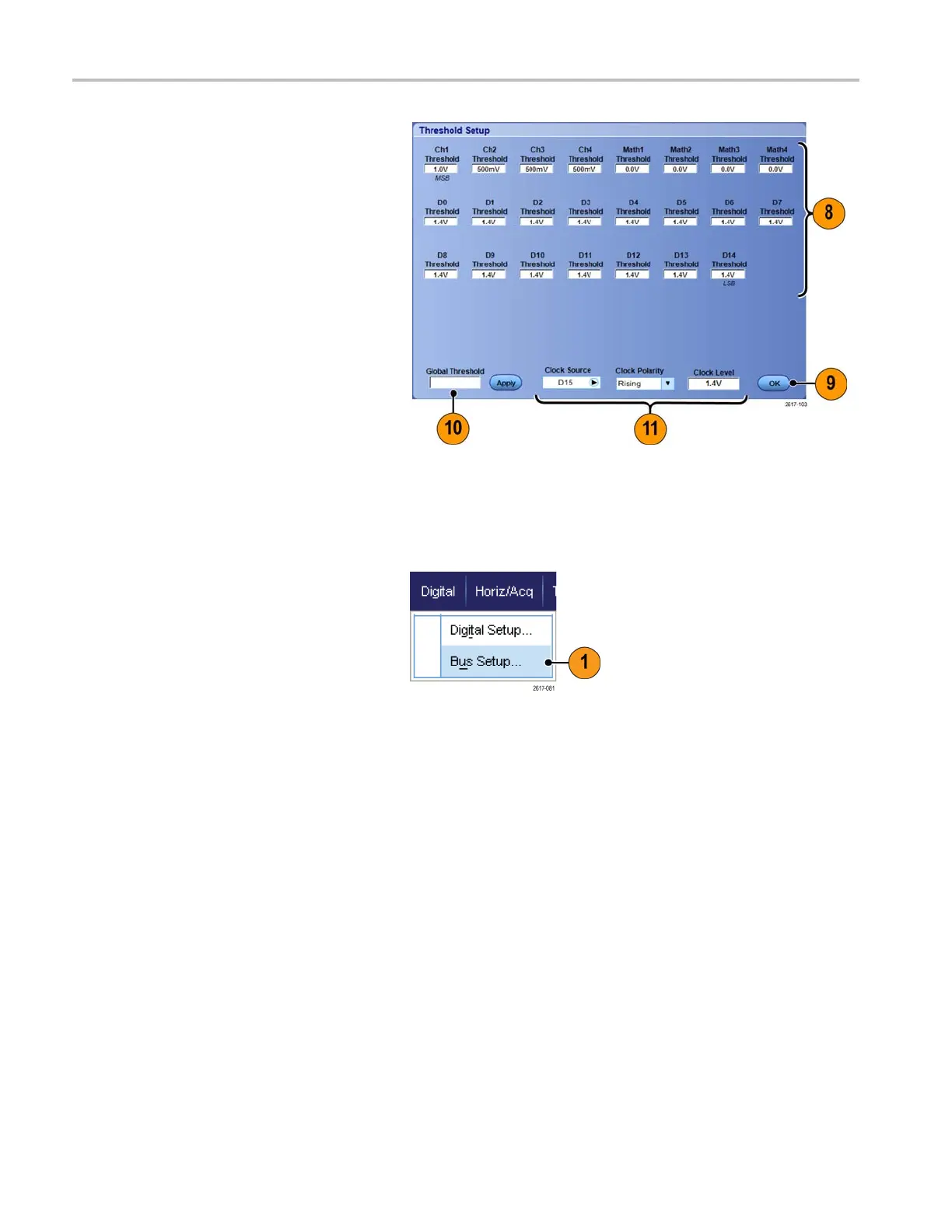 You can set the bus style and decoding. You can use digital channels in bus de nitions on MSO Series instruments only.