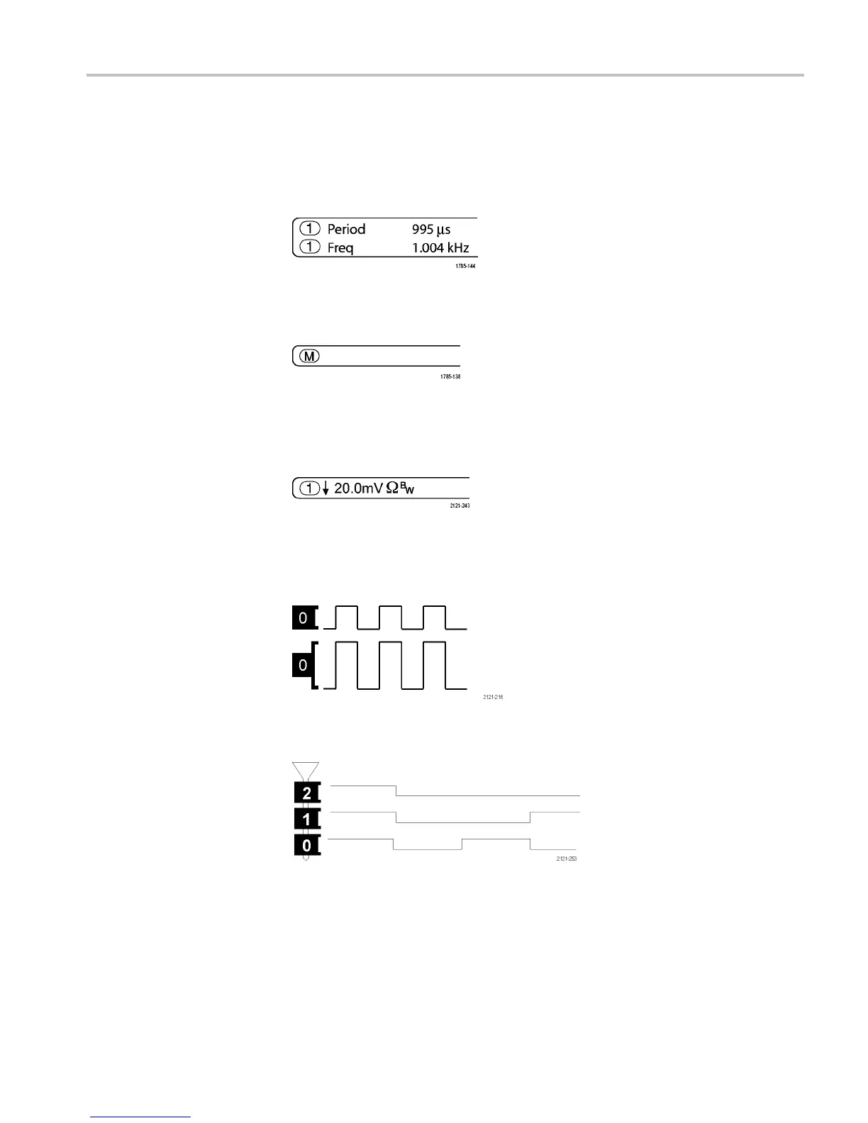 19. For analog channels, the waveform baseline indicator shows the zero-volt