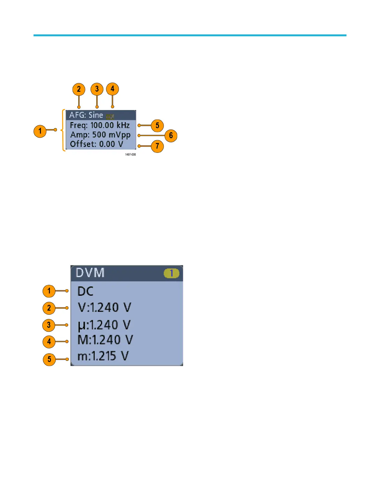 This topic shows and describes each element of the digital voltmeter display.