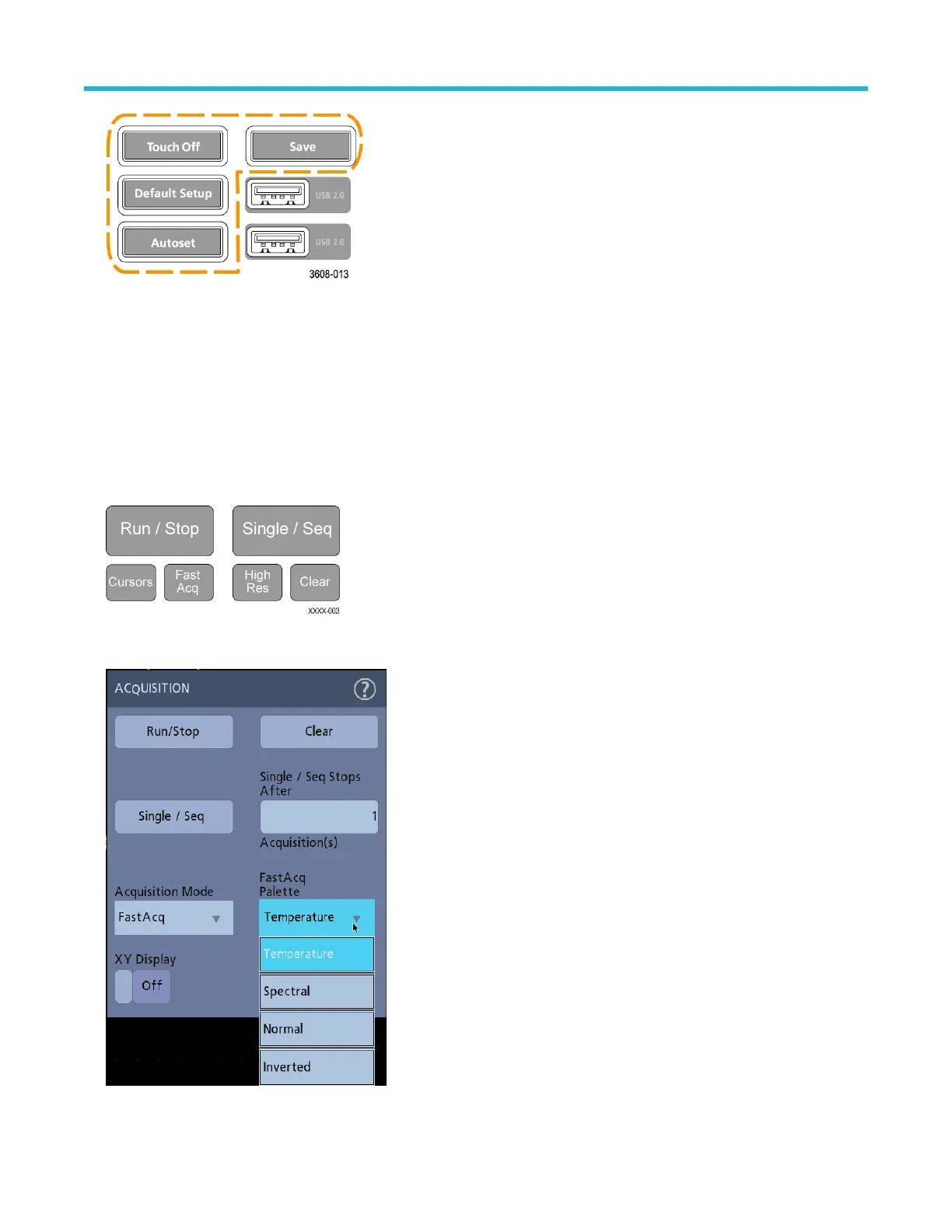 o display waveform phenomena at an intensity that reflects their rate-of-occurrence, after selecting the Fast Acq acquisition mode,