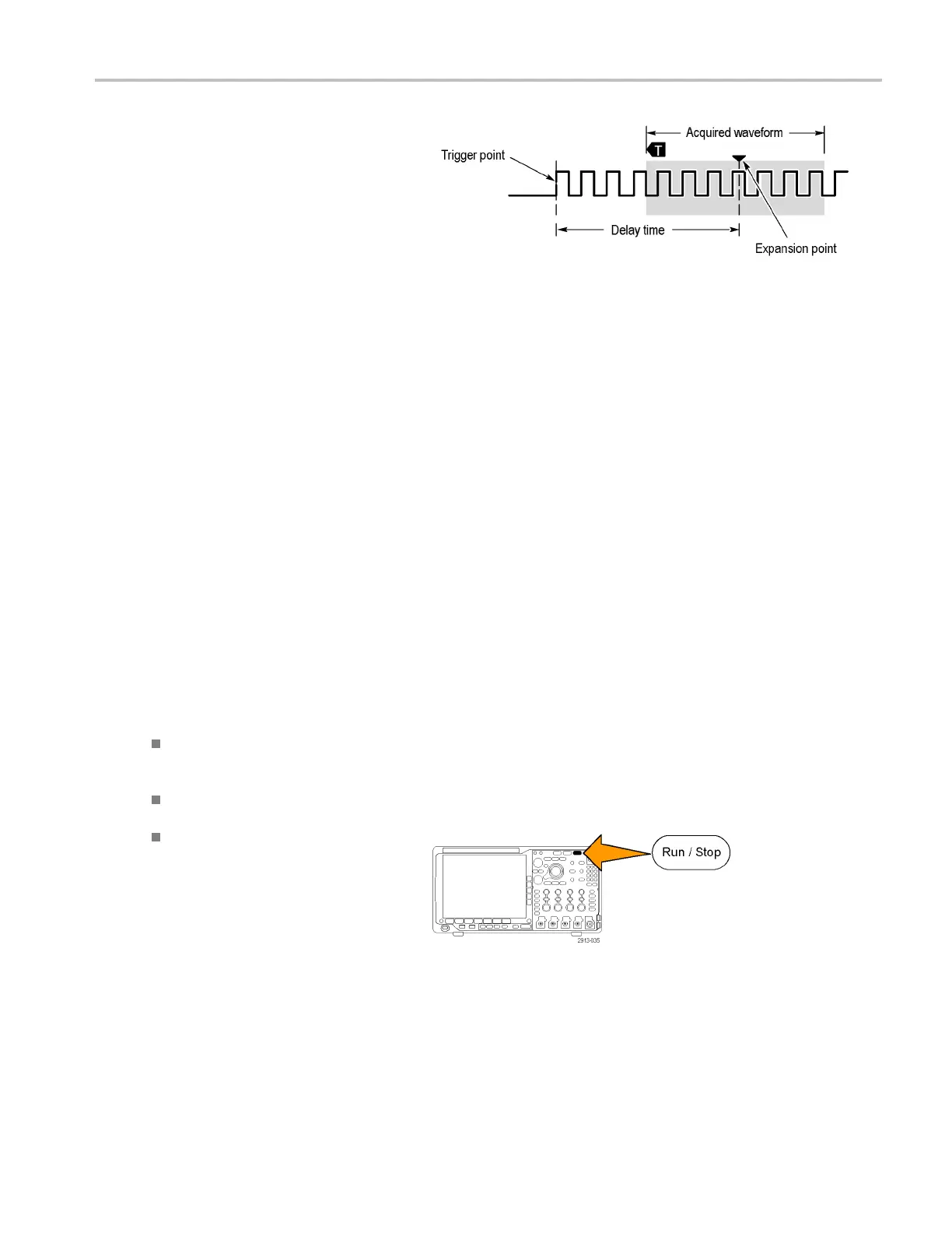 Use the delay feature when you want to acquire waveform detail that is separated from the trigger event by a significant