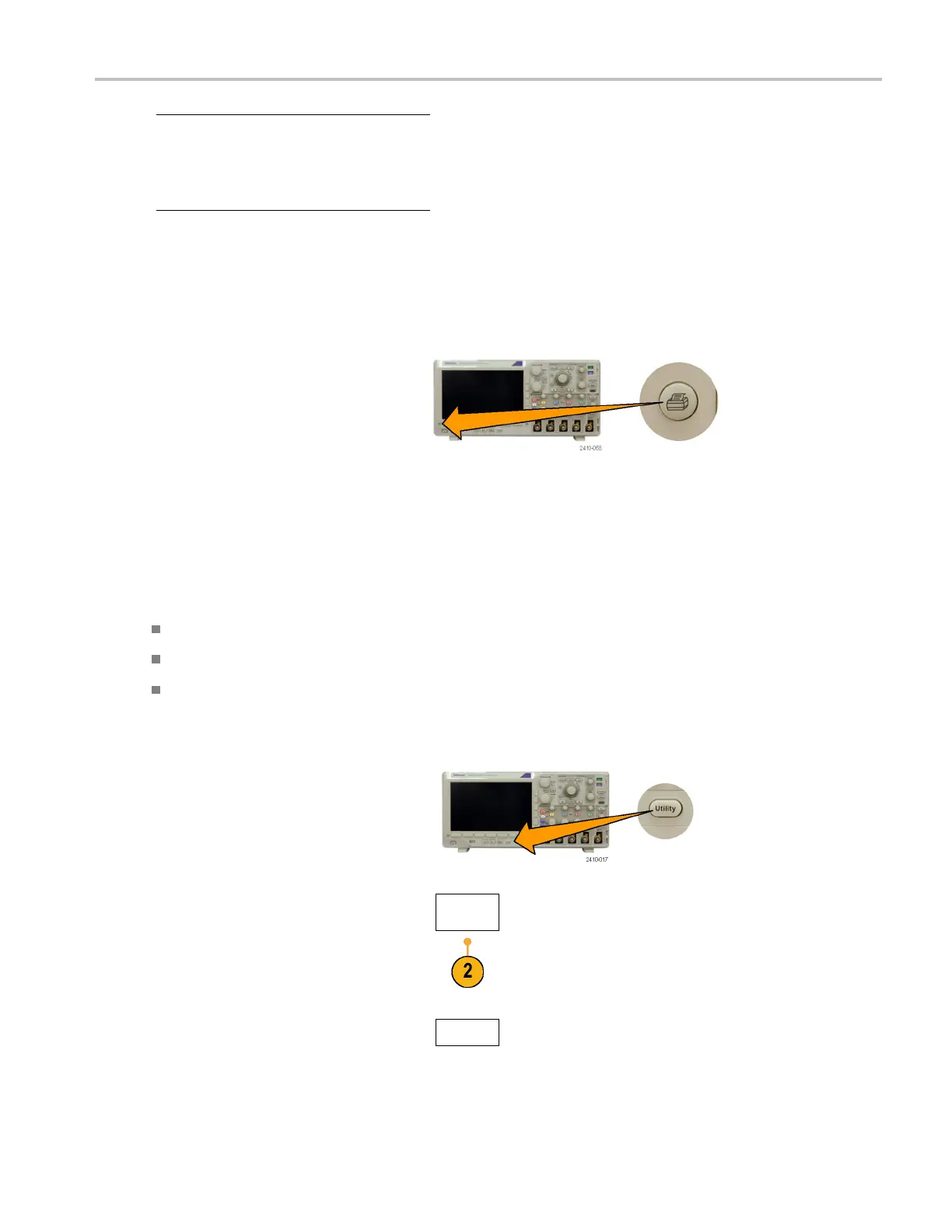 Once you have connected a printer to your oscilloscope and set up print parameters, you can print current screen images