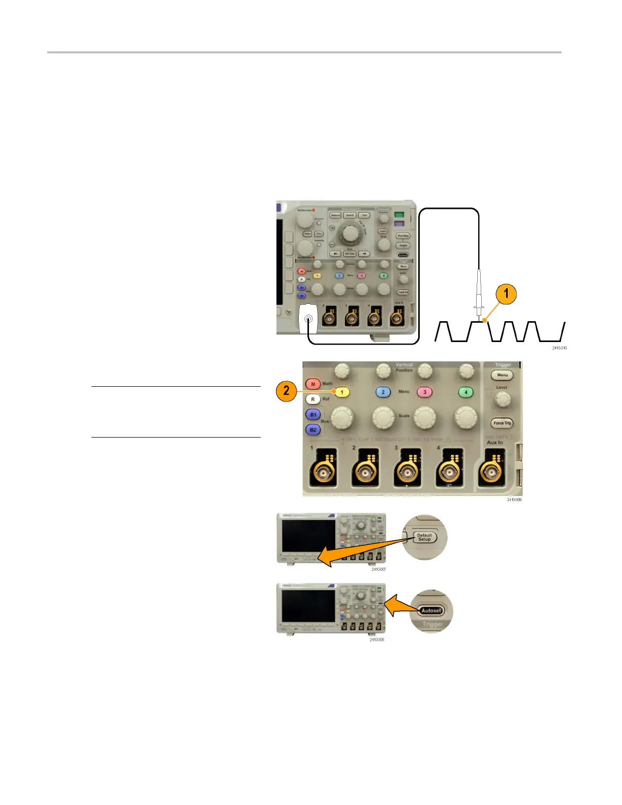 Use front-panel buttons and knobs to set up your instrument to acquire signals using the analog channels.