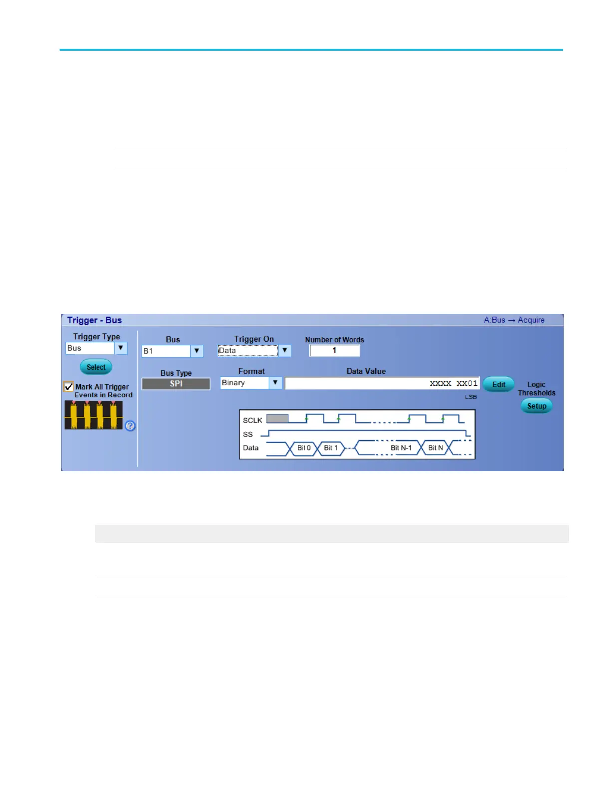 Click the Logic Thresholds Setup button to set the voltage threshold levels for the channels in the bus.