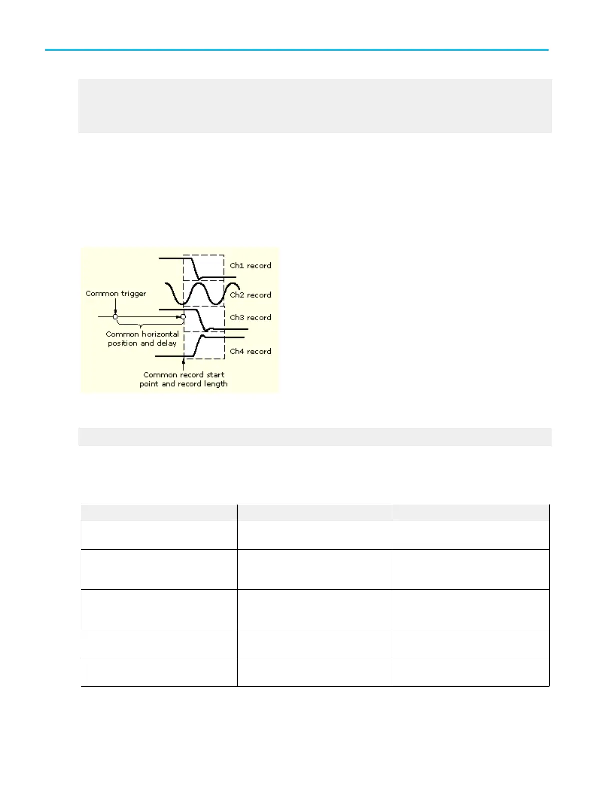 The instrument applies the same horizontal acquisition window to all channels from which it acquires data. Unlike the vertical