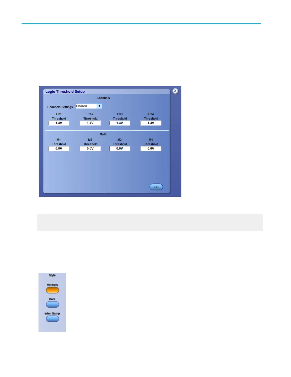 Click the Threshold entry box for the desired channel and use the keypad to enter a value or use the multipurpose knobs to