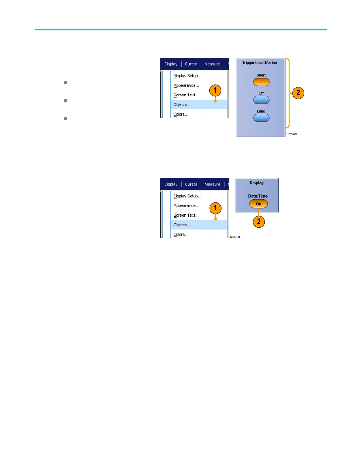 Tektronix MSO5054B - Setting the Trigger Level Marker; Displaying the Date and Time