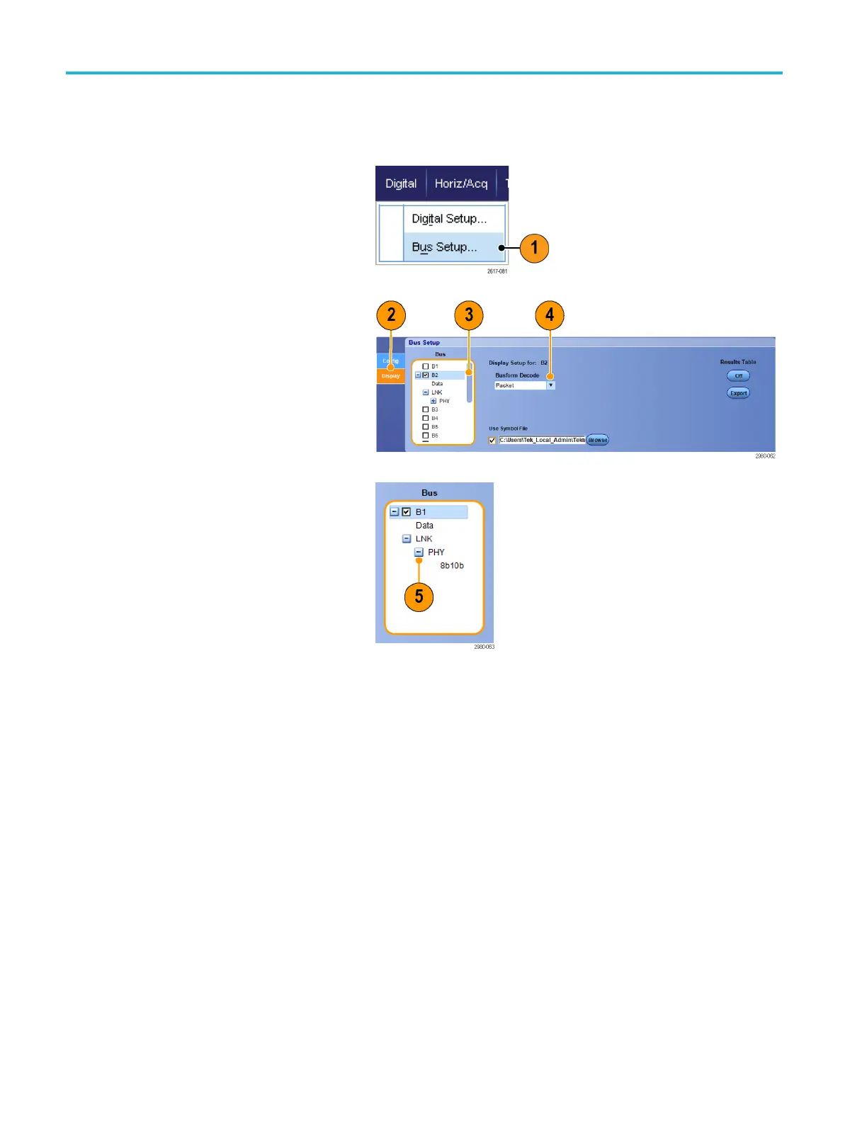 You can set the bus style and decoding. You can use digital channels in bus de nitions on MSO Series instruments only.
