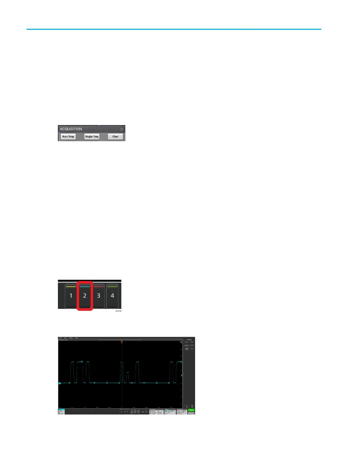 2. To stop an acquisition, tap Run/Stop again or push the Run/Stop button.