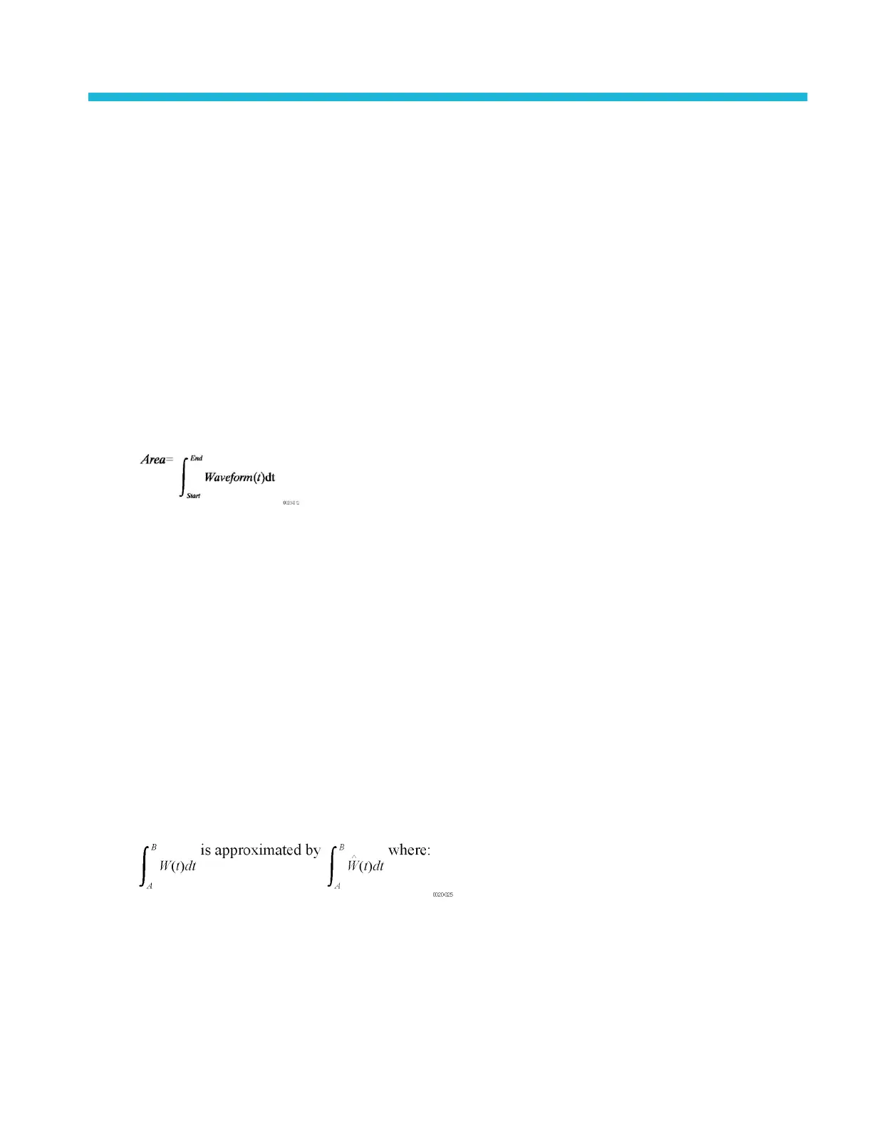 Area is the arithmetic area for one waveform. The area measured above ground is positive. The area measured below ground is