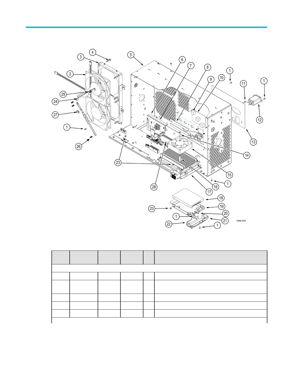 Figure 5: Carrier interface board and rear chassis exploded view on page 29