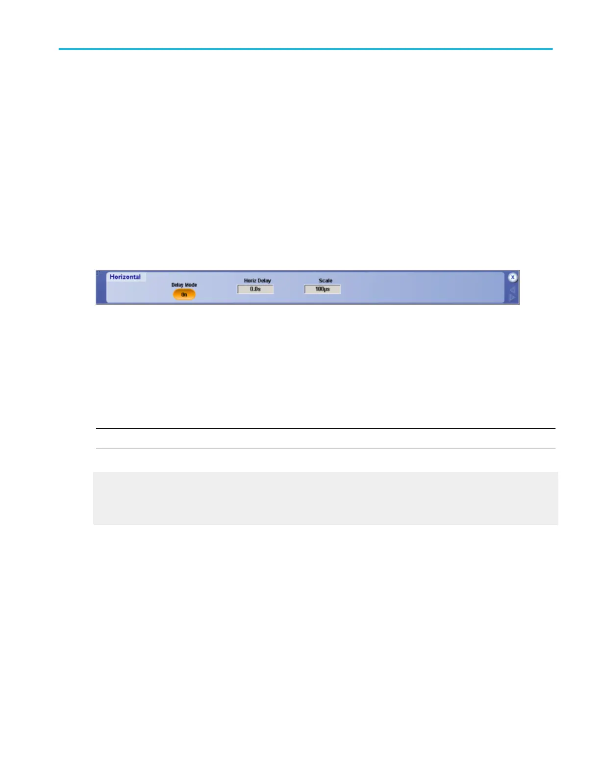 Use the Horizontal control window to set the horizontal delay and the horizontal scale of the displayed waveforms when the