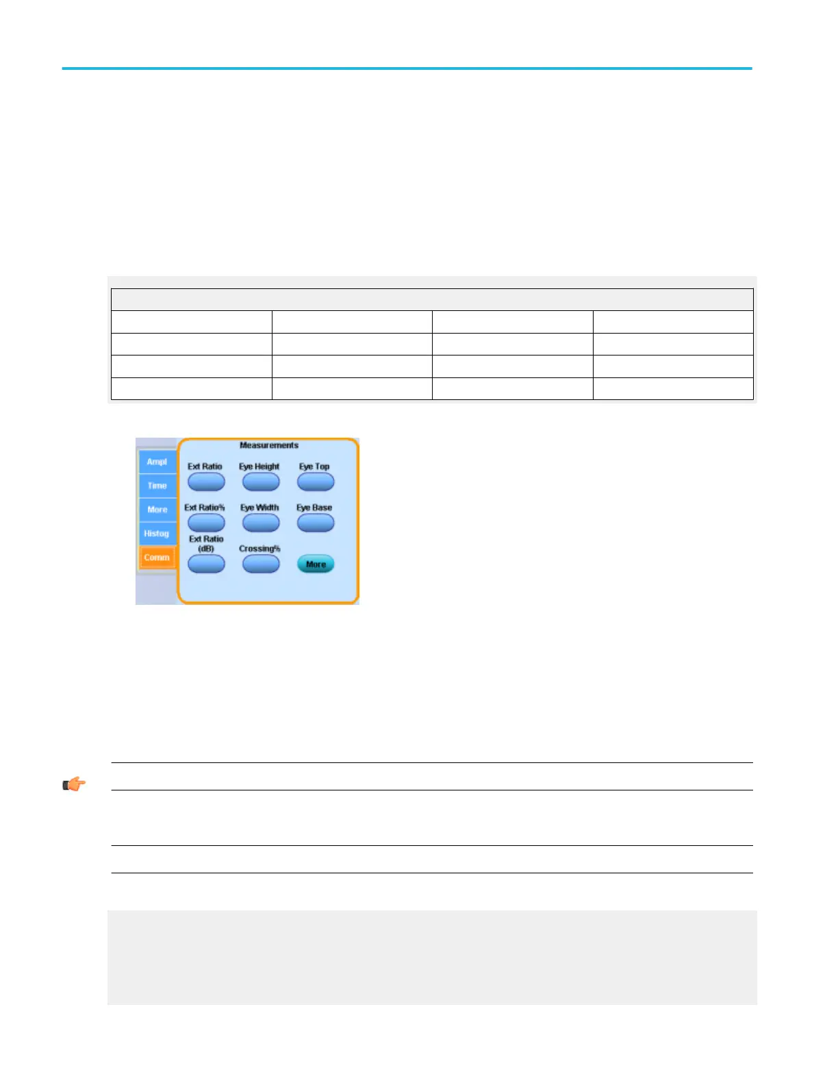 NOTE. You can also select the individual measurements directly from the Measure menu Comm submenu.