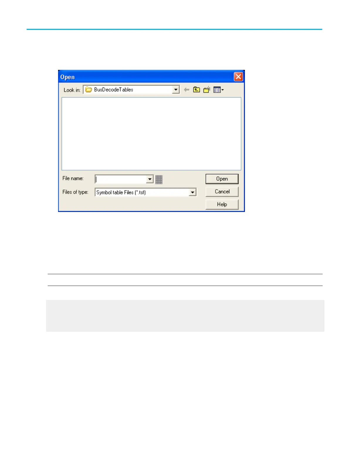 \BusDecodeTables directory, where the instrument expects to find it. When you open a symbol table file, the instrument uses the