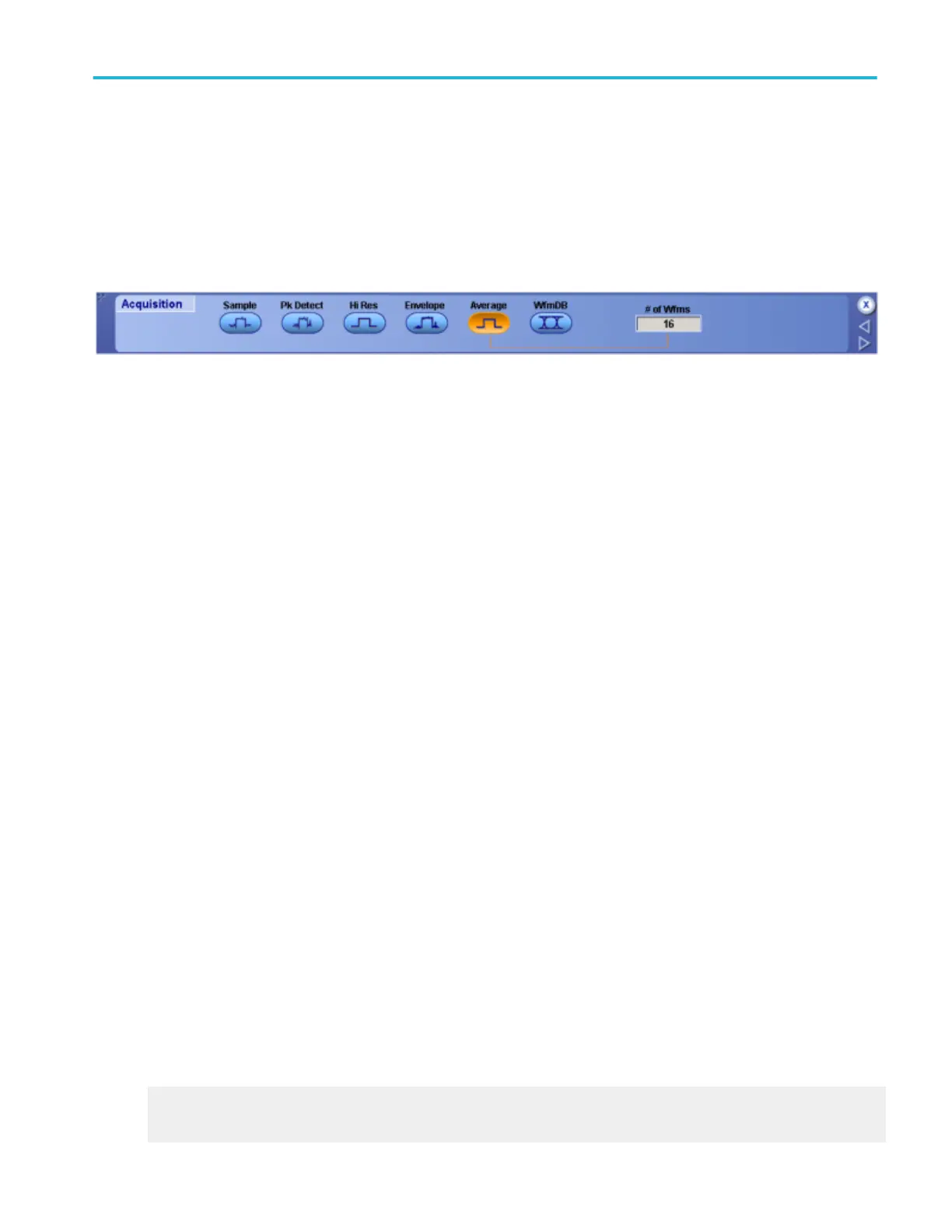 Average acquisition acquires and displays a waveform record that is the average result of several acquisitions. This mode