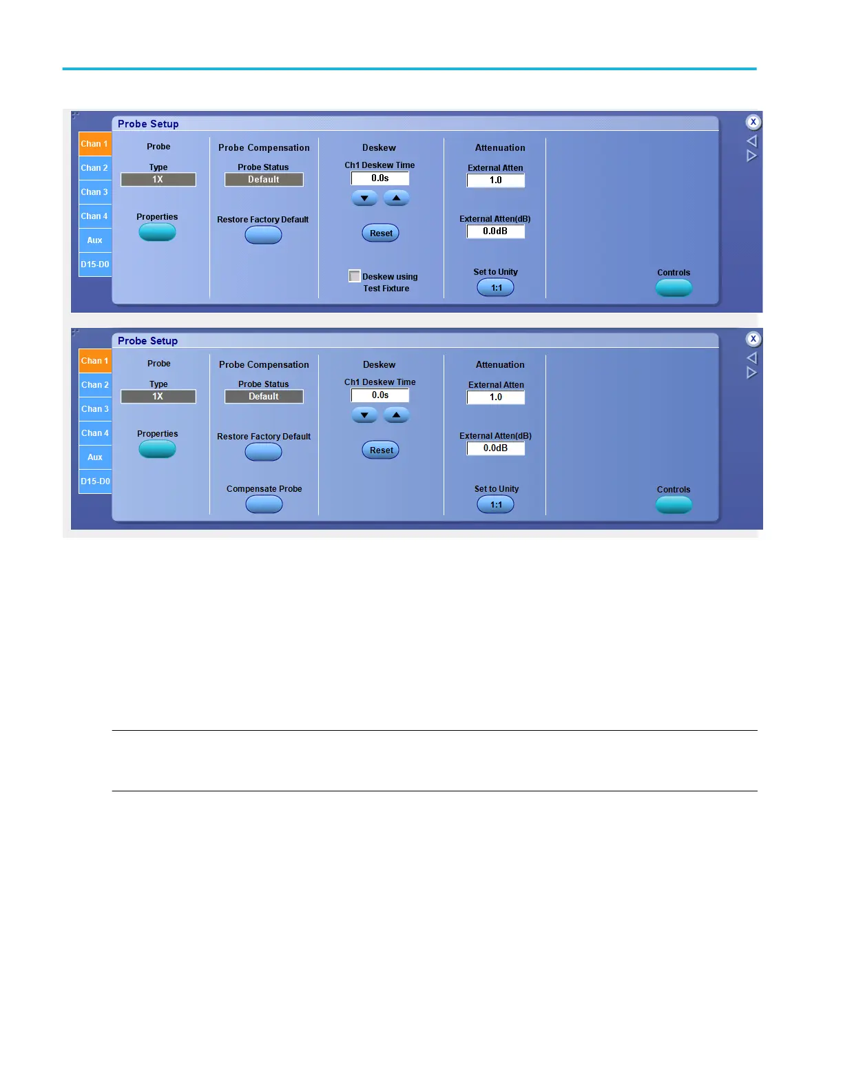 NOTE. The Probe Status control indicates the status of probe compensation for the selected channel. If the probe status does