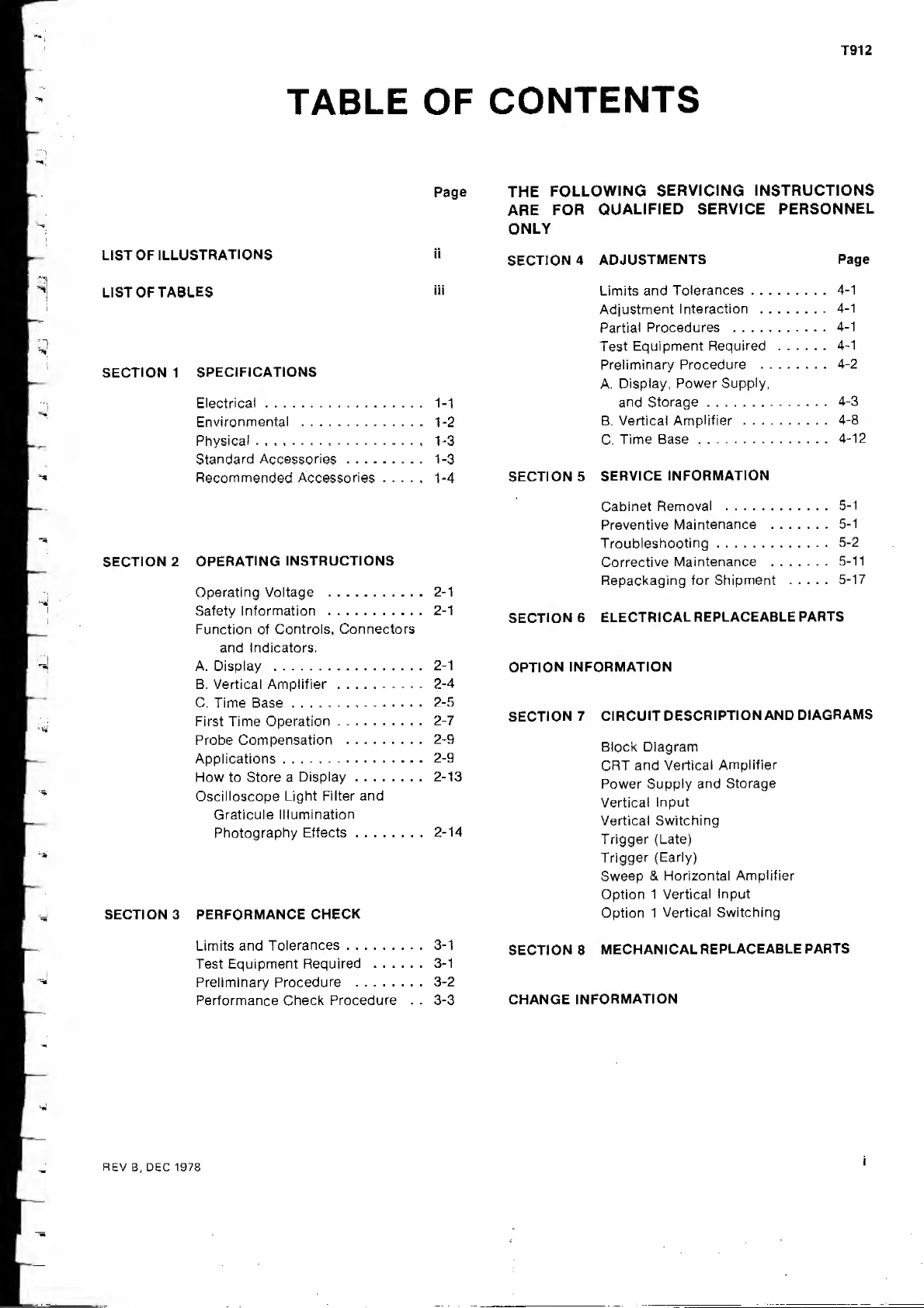 Tektronix T912 - Table of Contents