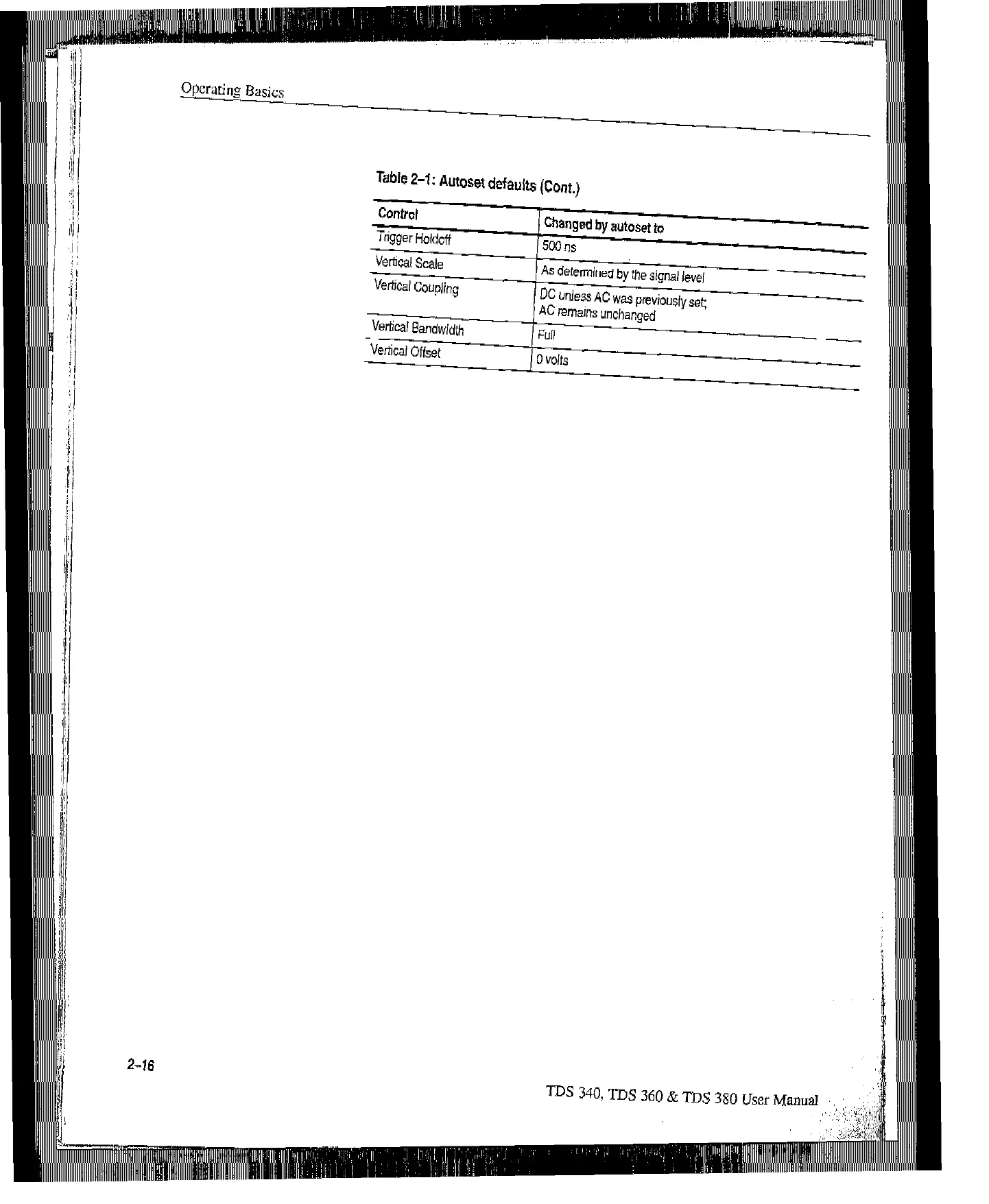 Table 2-l: Autoset defaults (co,-,t.)