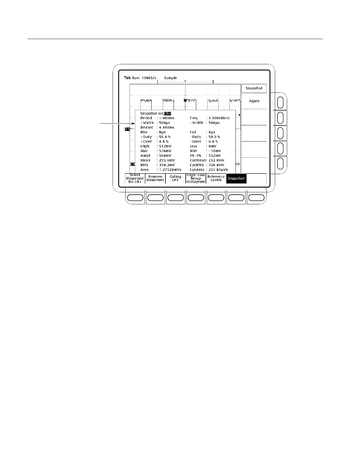 Be sure to display the waveform properly before taking a snapshot. Snapshot