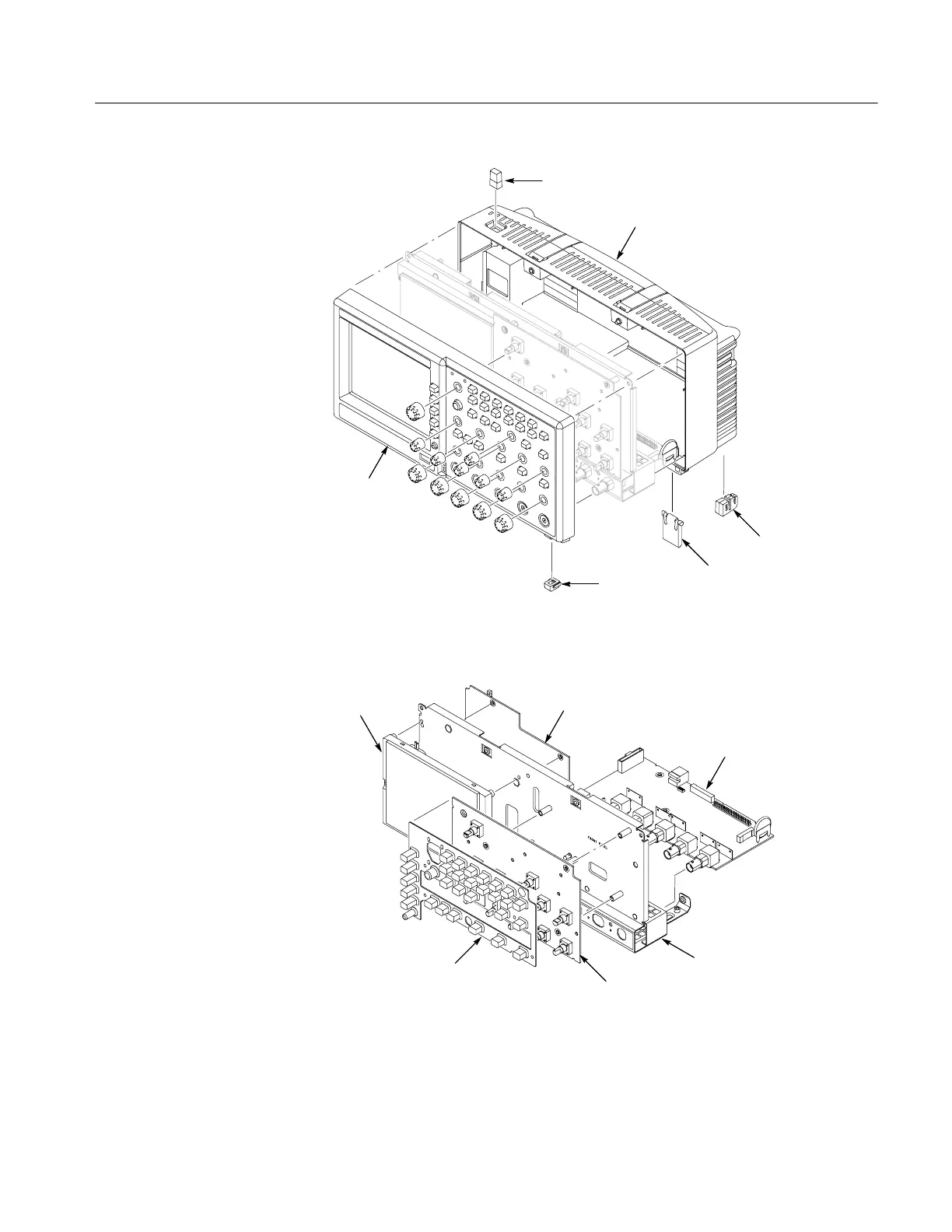 Tektronix TDS2012B - Power Button; Rear Case; Figure 6- -1: Locator for Trim and Cabinet Removal; Figure 6- -2: Locator for Internal Modules