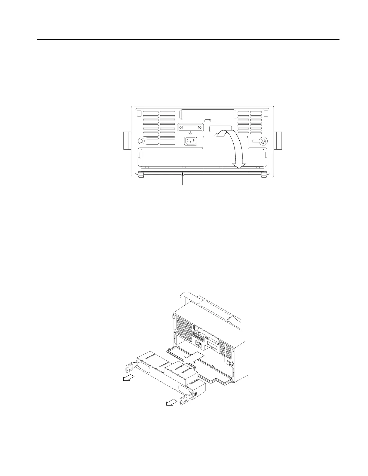 2. Lift the battery handles and pull the battery out of the oscilloscope.