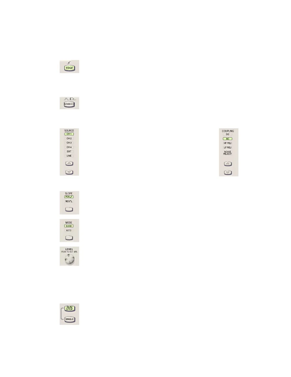 trigger slopes for the Edge trigger. The selected trigger slope is lighted. These