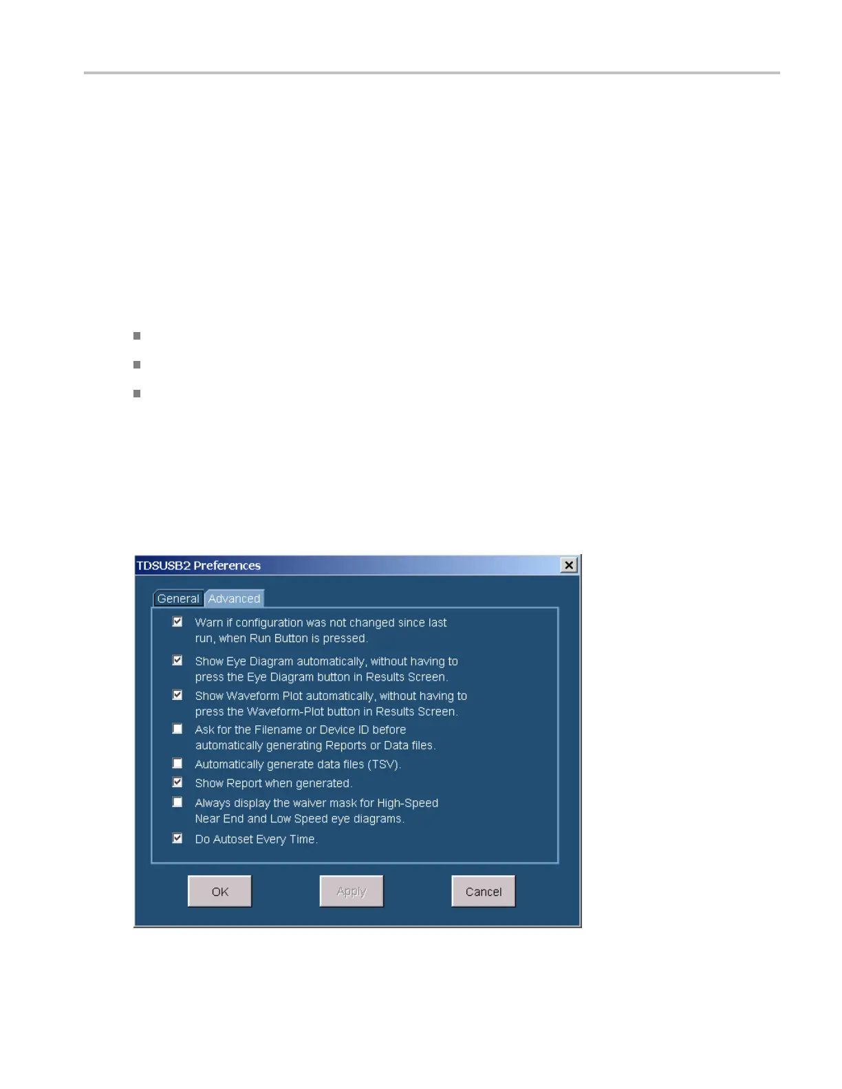 The Preferences menu consists of two tabs: General and Advanced. To access the Preferences menu,