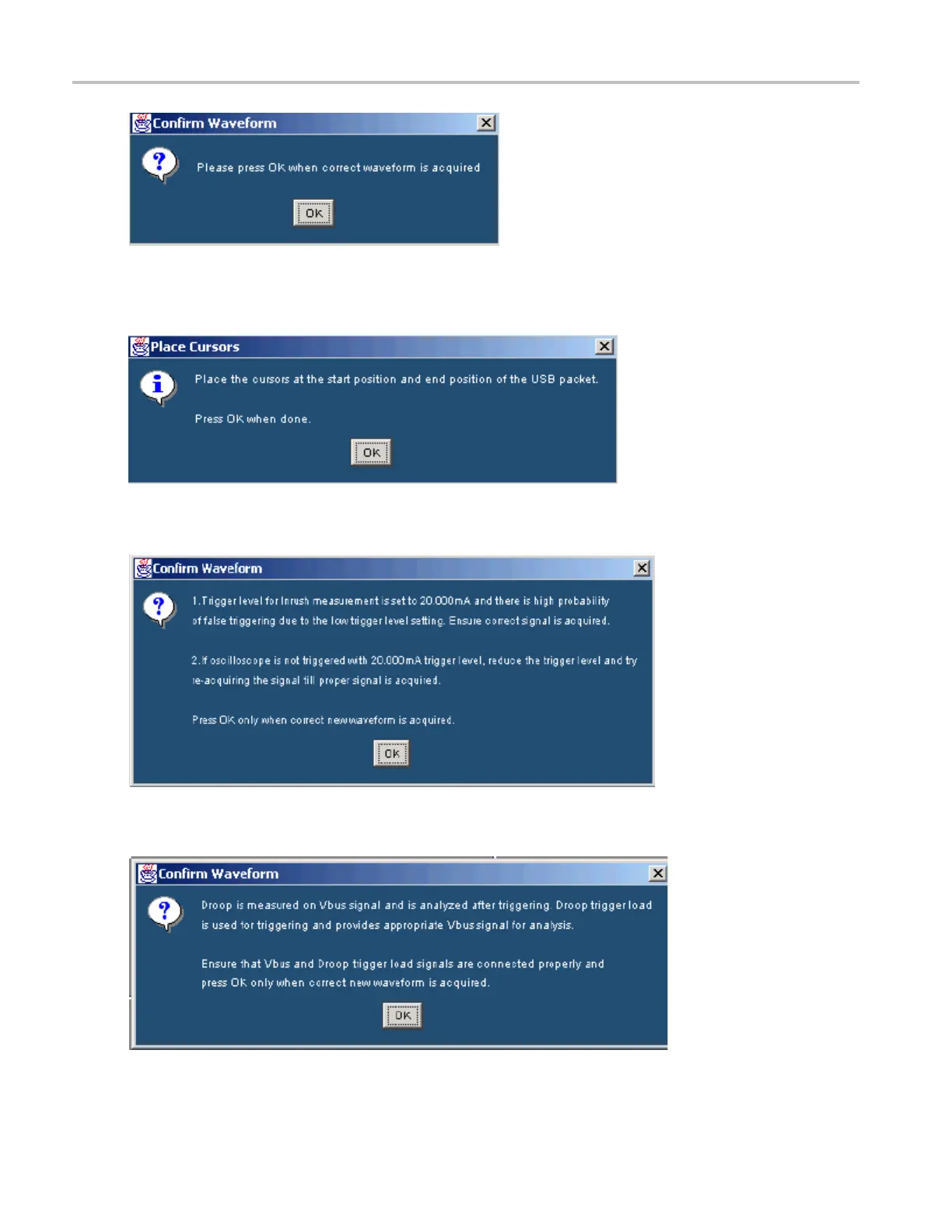 5. If you select the Droop measurement, the application displays the message in the next figure.