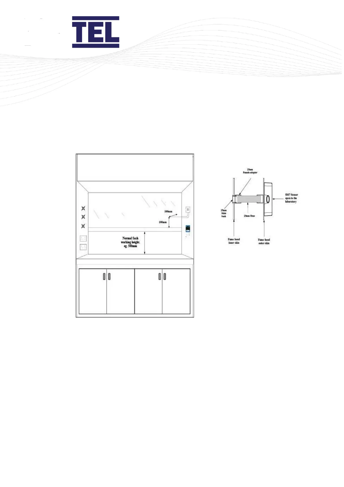 2. If possible, mount the sensor on the front of the fume cupboard and use a short