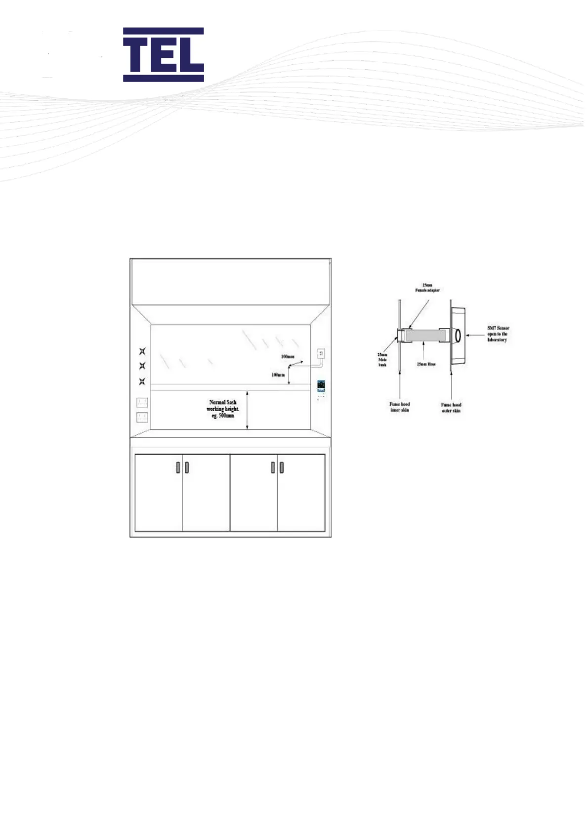 of 25 mm, which should be connected to the inner chamber of the fume cupboard. This tube