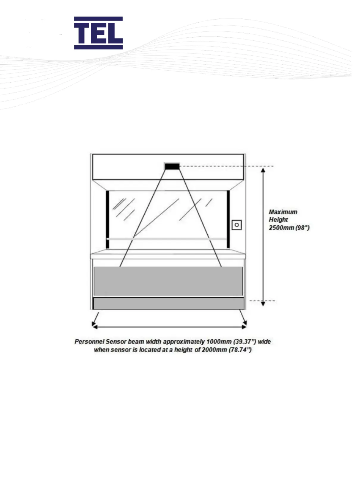 Note: Do not mount the sensor higher than 250 0mm (98”) from the laboratory floor.