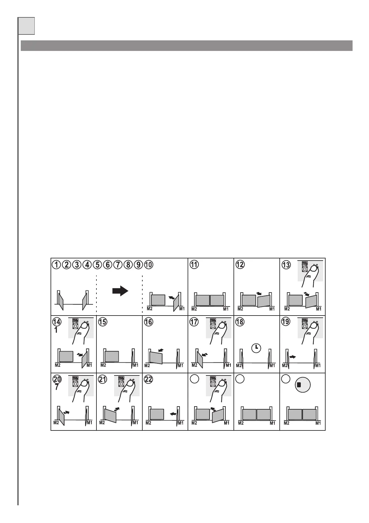 19- Quand le temps de pause désiré s'est écoulé, presser la touche P/P, le moteur M2 part en fermeture.