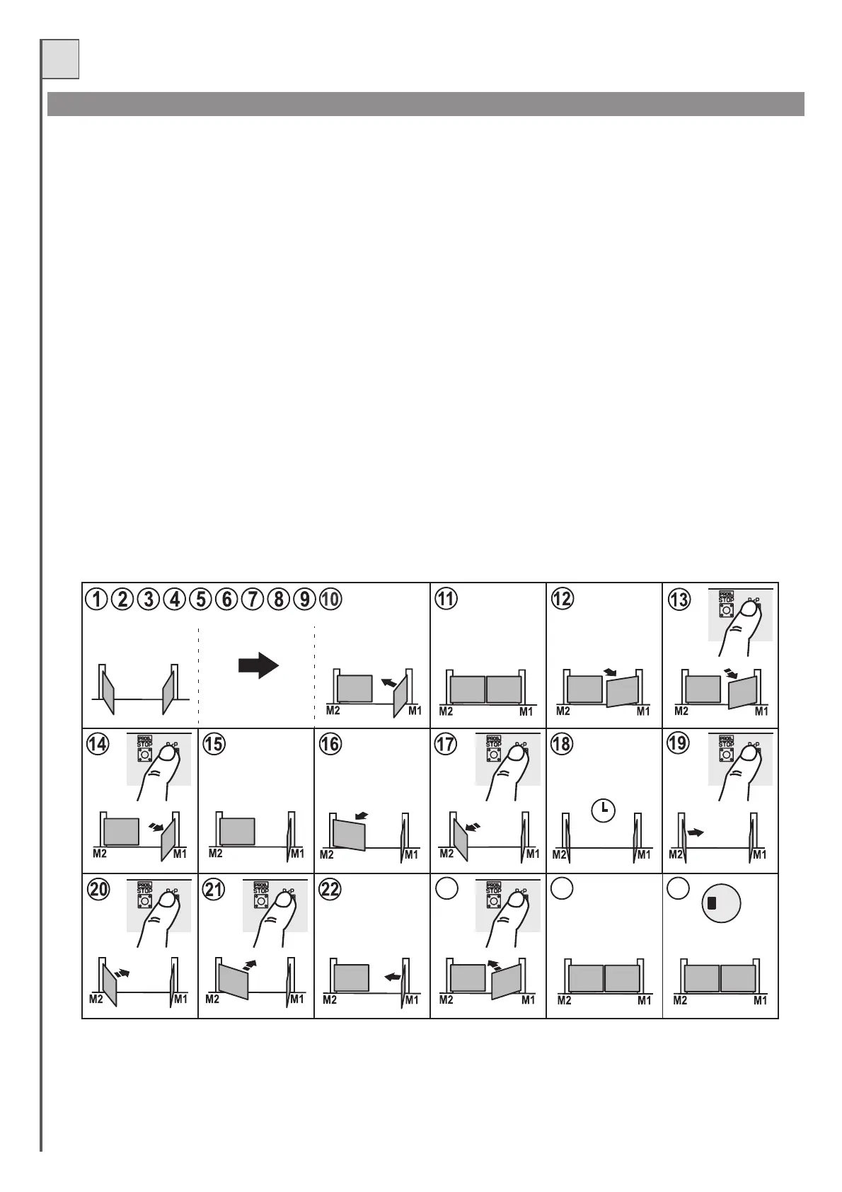 21- Press S/S when the leaf with M2 reaches the (required) deceleration zone. To indicate and confirm recording, motor M2 stops for a few seconds and