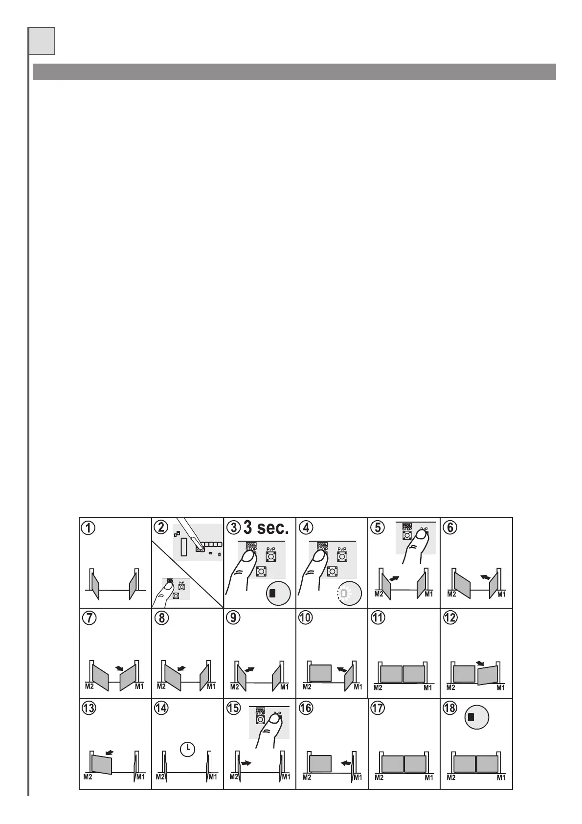 5- Druk op de knop P/P om de herkenningsfase van start te laten gaan. De vleugel M2 beweegt zich gedurende (ongeveer) 3-5 sec in de sluitrichting en
