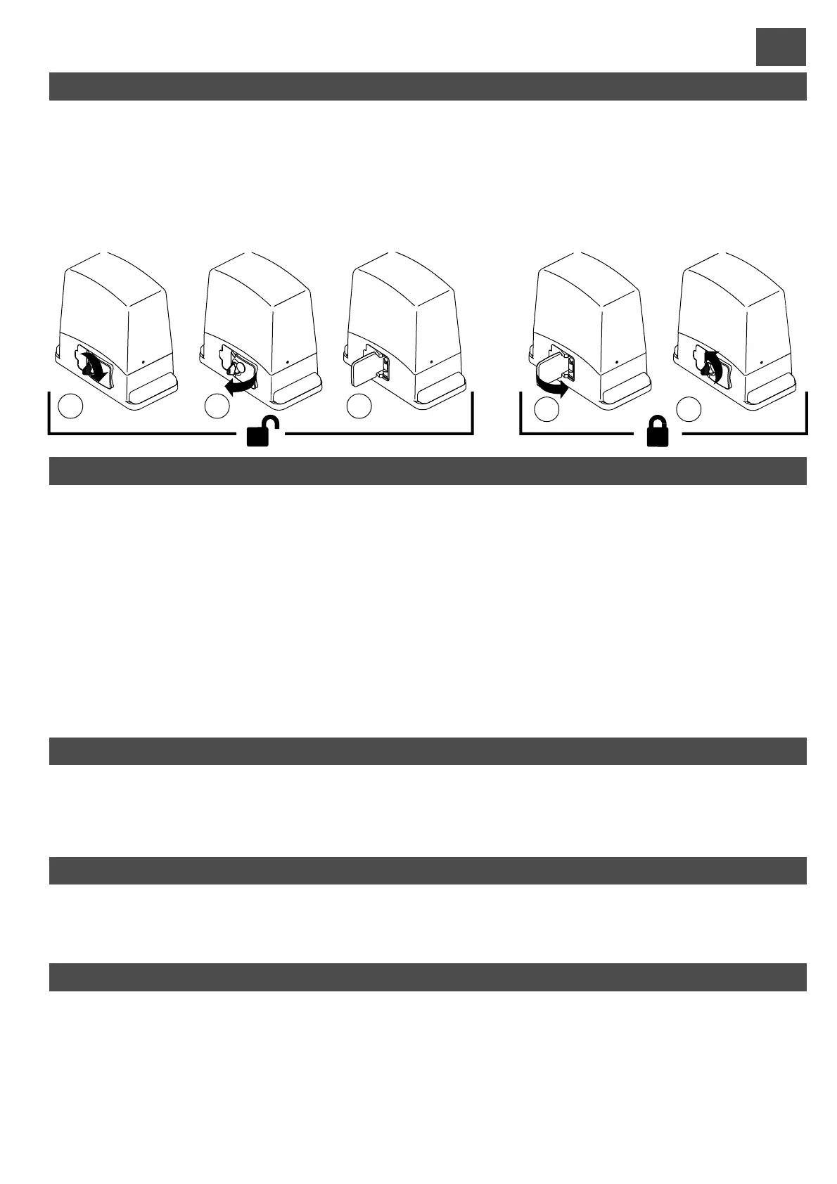 4) close the lever 5) turn the safety key anti-clockwise; the gearmotor is then locked and the leaf can only be moved