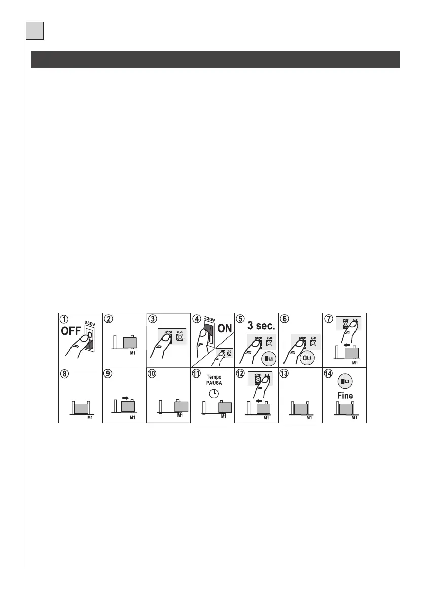 4,5,6) Power the control unit by holding down the STOP/PROG button (item 2 of Fig.1) for at least 3 seconds. The pro-