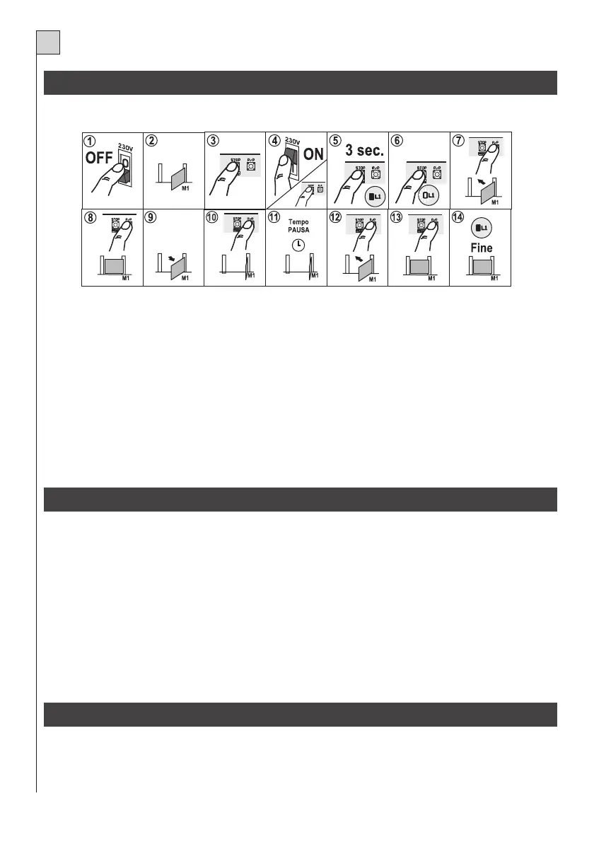 8,9) BeimAnschlagen des Tors die Taste P/P drücken. Der Motor kommt zum Stillstand und setzt sich beim Öffnen des Tors auto-