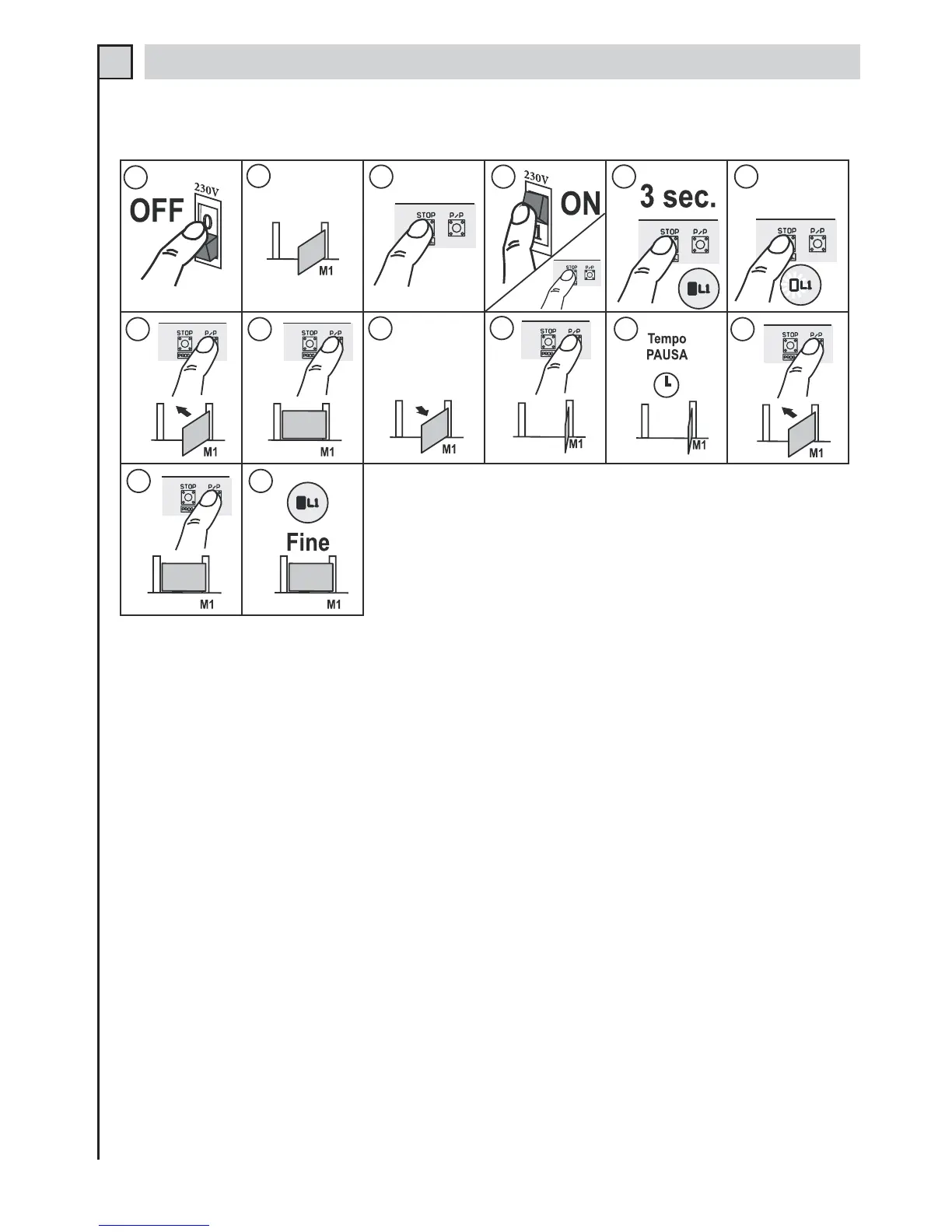 12 - Nach Ablauf der gewünschten Pausezeit, auf die Taste P/P drücken. Das Tor schließt sich wieder.