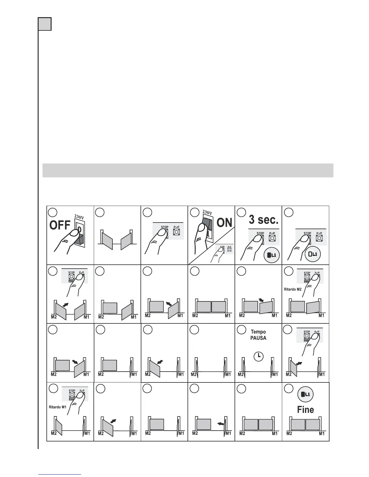 18 - Na afloop van de gewenste pauzetijd drukt u op de knop P/P en de motor M2 start in de sluitrichting.