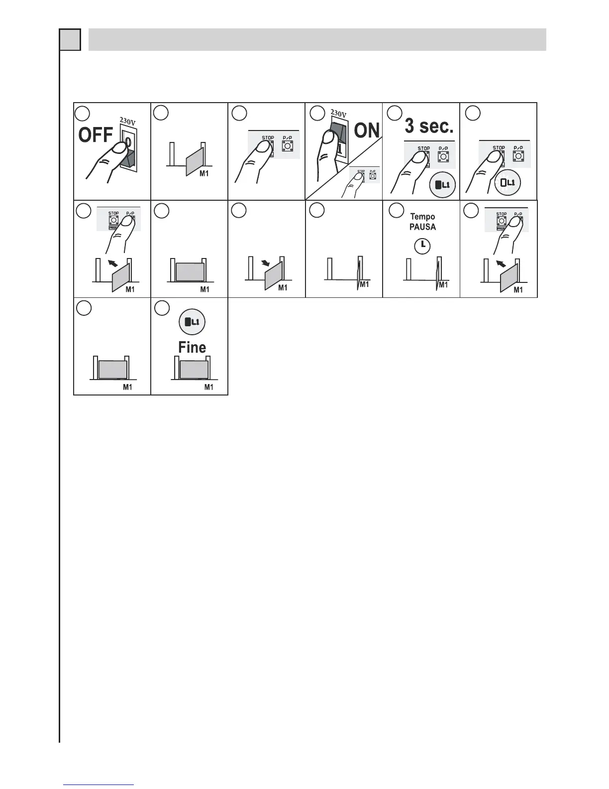 12 - Na verloop van de gewenste pauzetijd drukt u op de knop P/P. De poort sluit opnieuw.