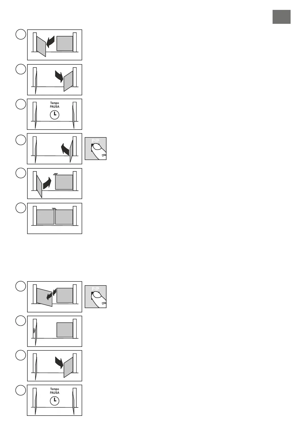 Druk op de P/P-drukknop voor stap-voor-stap-bedrijf (detail 17 van afb. A); de poortvleugel